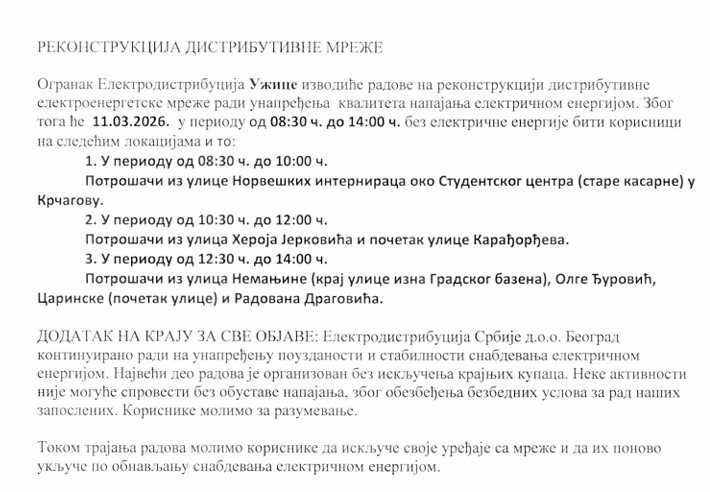 Početna Zlatiborski okrug Užice Bez struje 11. marta