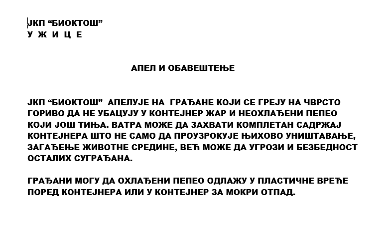 Početna Zlatiborski okrug Užice „Bioktoš“ poziva na oprez pri odlaganju pepela Zlatiborski okrugUžice 18. novembar 2025. Objavljeno: 2 sata ranije „Bioktoš“ poziva na oprez pri odlaganju pepela Autor: RadioLuna Podelite Facebook Twitter Pinterest WhatsApp Radio Luna - REKLAMA - - Advertisement - Tagsdeponovanje pepelaJKP Bioktoš Podelite Facebook Twitter Pinterest WhatsApp RadioLunahttps://www.radioluna.info - REKLAMA - Vremenska prognoza Užice overcast clouds enter location 3.8 ° C 3.8 ° 3.8 ° 96 % 0.6kmh 100 % Uto 4 ° Sre 4 ° Čet 9 ° Pet 11 ° Sub 1 ° Poslednje vesti Srbija i region Padavine i niske temperature upozoravaju na dodatni oprez vozača RadioLuna - 18. novembar 2025. - REKLAMA - Dijalog Srbija i region Pašalić: Oko 90 odsto institucija poštuje preporuke Zaštitnika građana 13. novembar 2025. Zdravlje SRCE: Zašto je javno zdravstvo prepustilo sistematske preglede privatnom sektoru? 12. novembar 2025. Društvo Premijer Macut: Srbija veoma blizu ulaska u Evropsku uniju, problem političke prepreke 12. novembar 2025. Poslednje vesti Srbija i region Padavine i niske temperature upozoravaju na dodatni oprez vozača 18. novembar 2025. Slobodno vreme Plesni komad „Ostrvo” 19. novembra na Zlatiboru 18. novembar 2025. Užice Pobeda Slobode u Beogradu: savladan OKK 98:105 18. novembar 2025. Užice „Bioktoš“ poziva na oprez pri odlaganju pepela 18. novembar 2025. Užice Havarija na magistralnom cevovodu: Deo Carine bez vode 18. novembar 2025. - REKLAMA - Postavite komentar otkaži odgovor Unesite Vaš komentar! molimo Vas unesite Vaše ime Vi ste uneli pogrešnu Email-Adresu molimo Vas unesite Vašu Email-Adresu Save my name, email, and website in this browser for the next time I comment. Δ