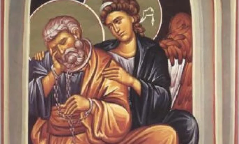 Irod je, prema predanju, Petra bacio u tamnicu i naredio da stoji okovan između dva vojnika i čeka suđenje. Međutim, noć pred izvođenje na sud, priča kaže, pojavio se anđeo i ti okovi su sami od sebe spali sa svetitelja.