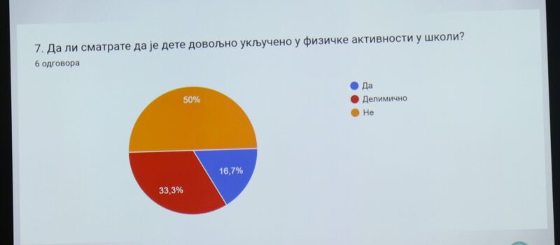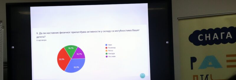 Sa druge strane, anketirani roditelji dece sa smetnjama u razvoju i invaliditetom smatraju da su prisutni strah i nedovoljna stručnost nastavnika, a da nedostaju oprema, prilagođeni programi. Složili su se i roditelji i nastavnici u upitnicima da nedostaje veća sistemska podrška nastavnicima na časovima fizičkog vaspitanja, ali i roditeljima u najranijem periodu odrastanja deteta sa smetnjama u razvoju i invaliditetom.