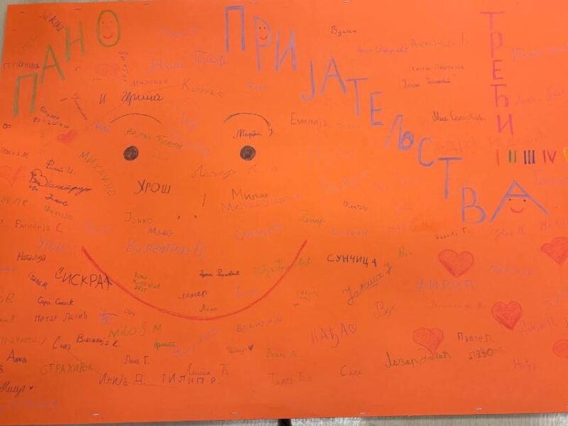 Učenici trećeg razreda su sa svojim učiteljima realizovali međuodeljenjsko druženje u prostorijama produženog boravka, pri čemu su drugarima prezentovali muzička umeća, razmenili pripremljene poruke prijateljstva i uredili zajednički pano prijateljstva koji je istaknut u holu škole. Učenici, učitelji i psiholog škole su uživali u spremljenom programu.