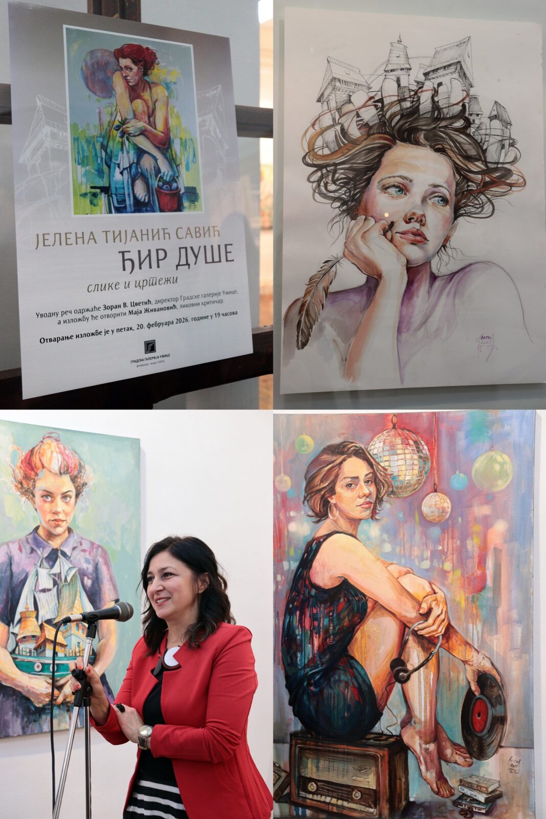 Slike i crteži umetnice Jelene Tijanić Savić izloženi su od 20. februara u Gradskoj galeriji Užice, gde se posle četvrt veka ponovo predstavlja užičkoj publici.