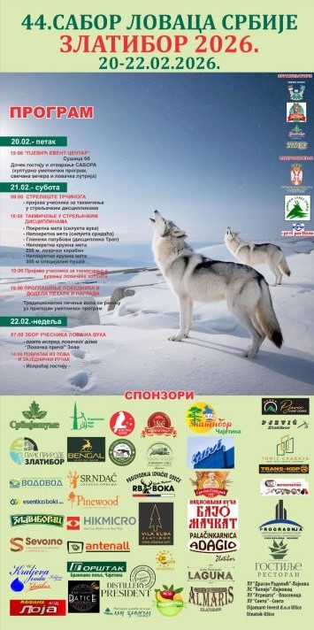Na Zlatiboru se od juče do 22. februara održava 44. Sabor lovaca Srbije – Zlatibor 2026.