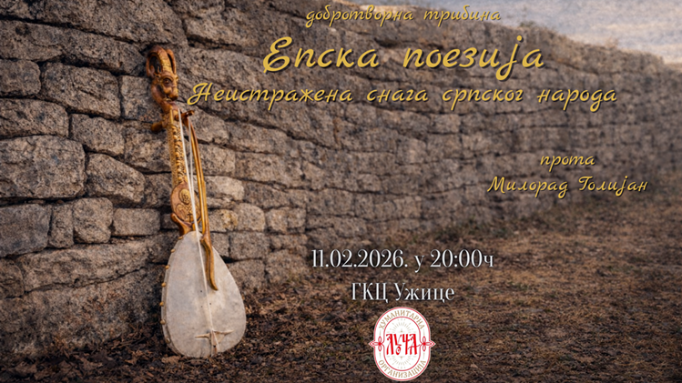 Dobrotvorna tribina sa temom „Epska poezija – neistražena snaga srpskog naroda“ biće održana 11. februara od 20 časova u klubu GKC-a.