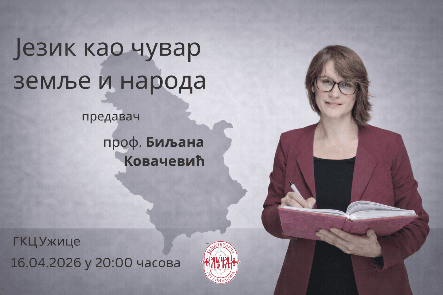 Dobrotvorna tribina sa temom „Jezik kao čuvar zemlje i naroda”, prof. Biljane Kovačević biće održana u četvrtak, 16. aprila sa početkom u 20 časova u Gradskom kulturnom centru. Sav prikupljeni novac tom prilikom biće namenjen za pomoć ugroženim porodicama.