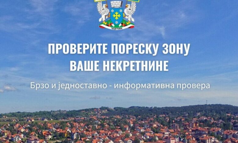 Poreskim obveznicima na teritoriji opštine Čajetina je dostupan elektronski servis za proveru u kojoj se zoni za utvrđivanje poreza na imovinu nalaze.