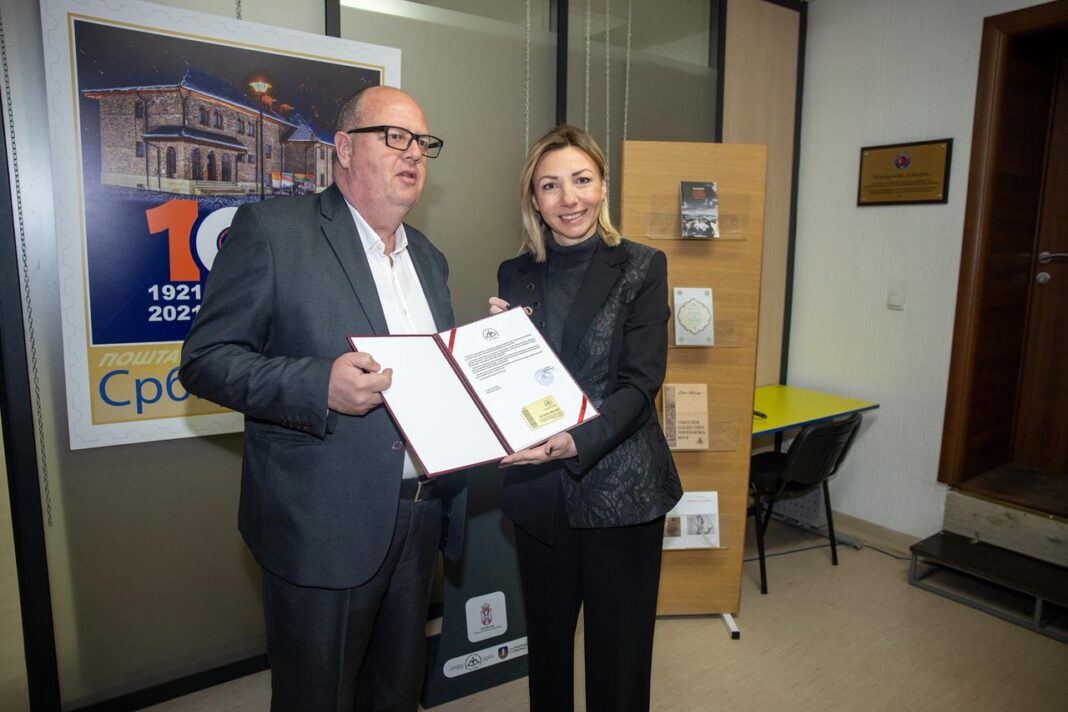 Posetu je započela u Narodnoj biblioteci „Dositej Obradović“, gde joj je uručena