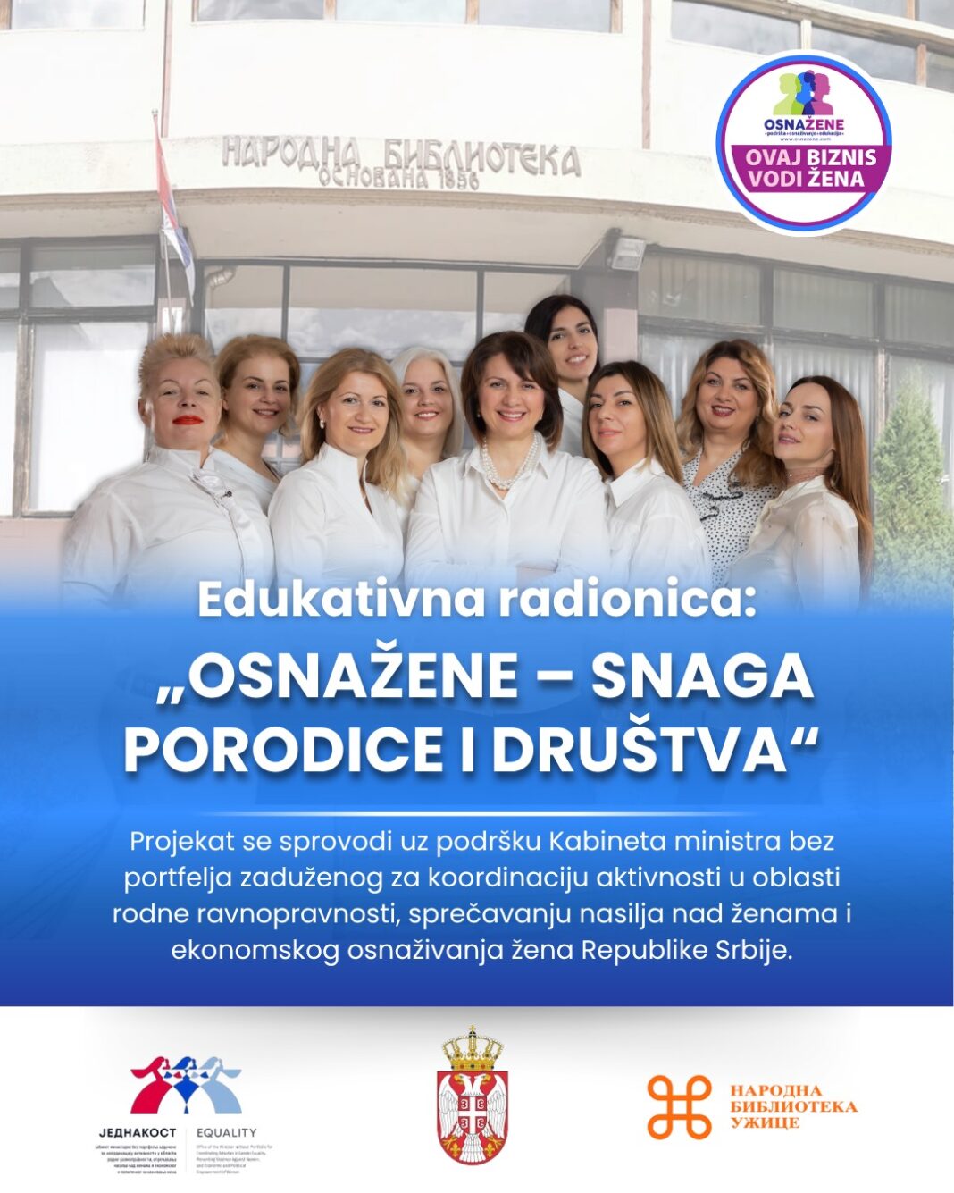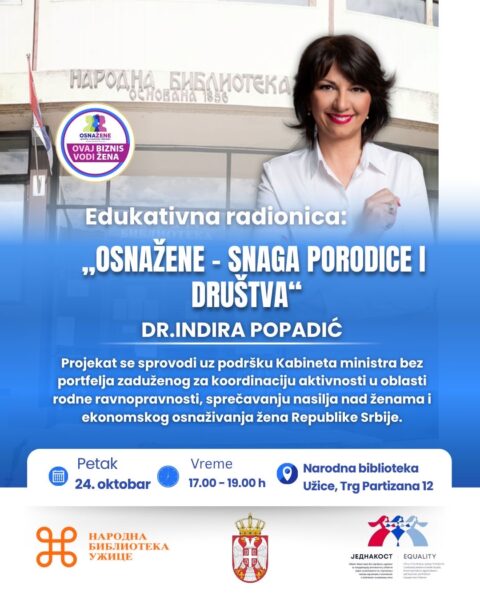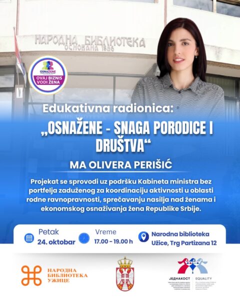 Udruženje OsnaŽene žene iz Novog Sada organizuje 24. oktobra u Užicu edukativni događaj pod nazivom „OsnaŽene – snaga porodice i društva“, u prisustvu oko 50 učesnica, predstavnica lokalnih udruženja, škola, ustanova kulture i malih biznisa.
