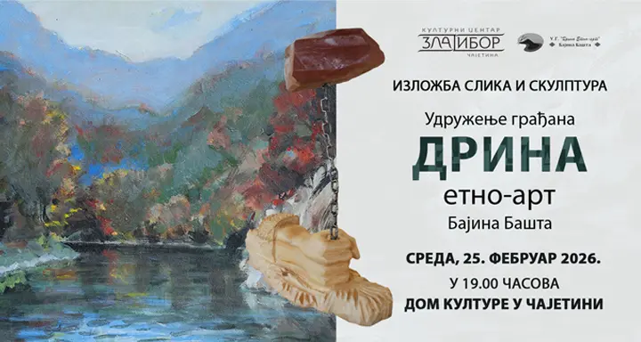 Izložba slika i skulptura Udruženja građana „Drina etno-art” iz Bajine Bašte biće otvorena u sredu, 25.2. u Domu kulture u Čajetini.