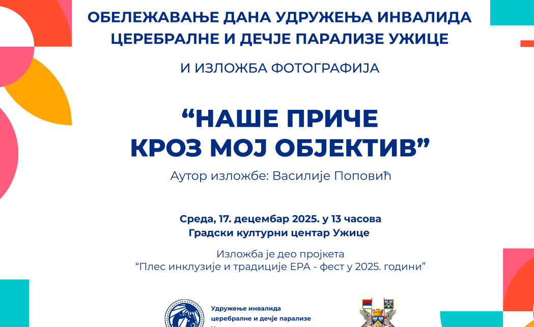 U okviru obeležavanja Dana Udruženja biće predstavljena autorska izložba fotografija „Naše priče kroz moj objektiv“ mladog autora Vasilija Popovića. Izložba donosi autentične i inspirativne priče članova Udruženja, sa posebnim akcentom na vrednosti različitosti, zajedništva i lične hrabrosti.