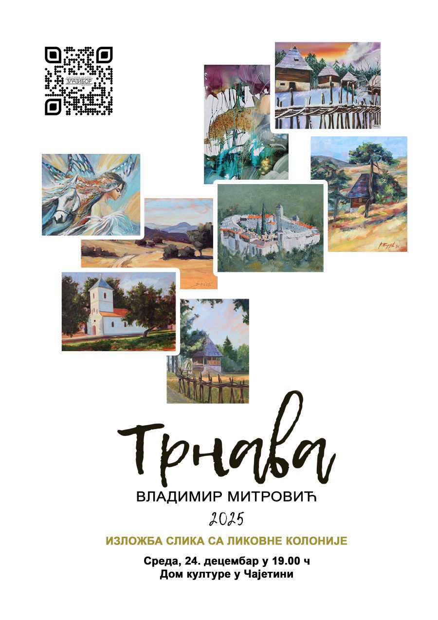 Izložba slika sa 33. Likovne kolonije „Trnava -Vladimir Mitrović” biće otvorena 24. decembra u 19 sati u Domu kulture u Čajetini.