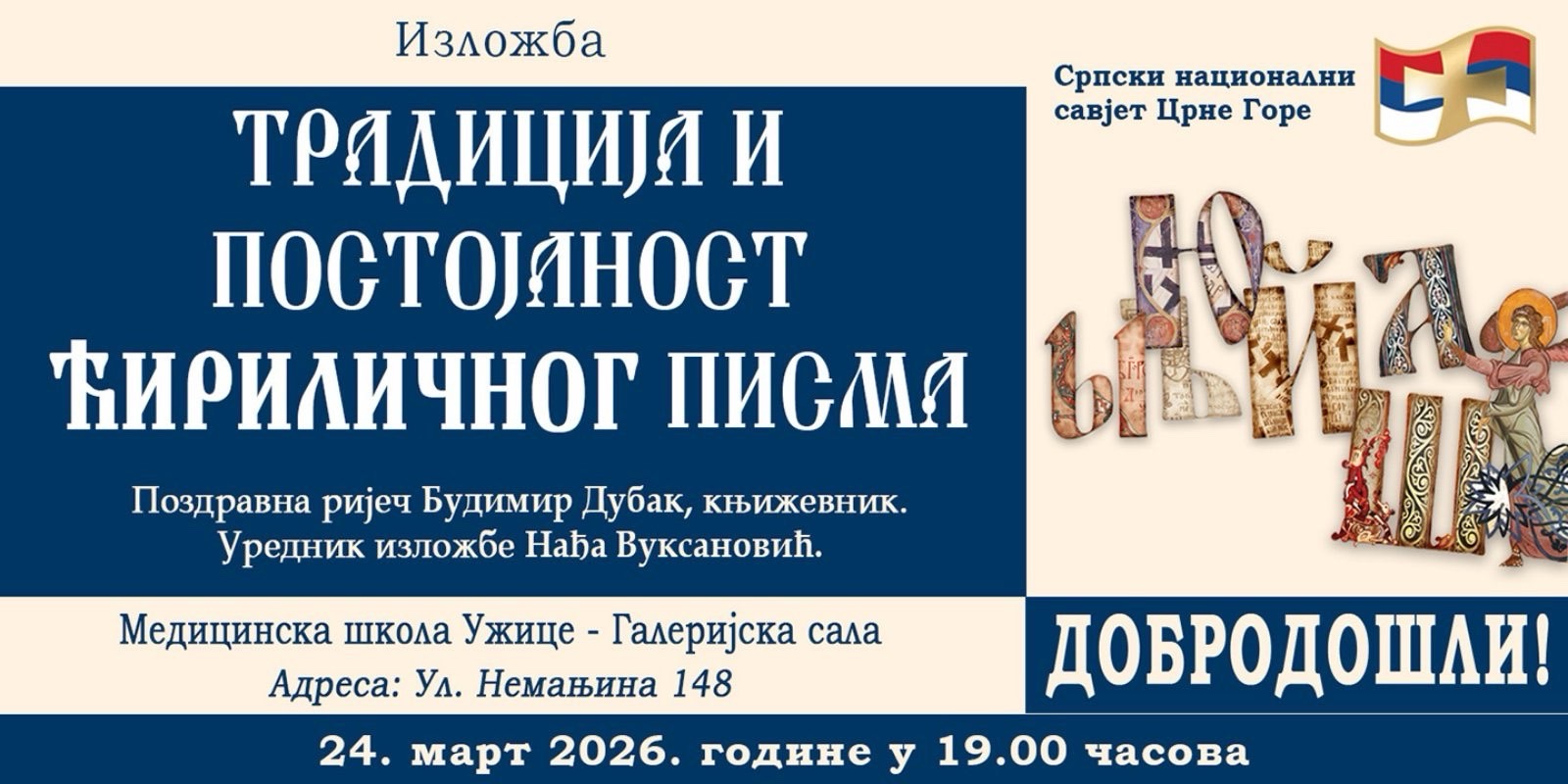U Užicu će u utorak, 24. marta, biti otvorena izložba pod nazivom „Tradicija i postojanost ćiriličnog pisma“, posvećena očuvanju i značaju ćirilice kao kulturnog i identitetskog nasleđa.