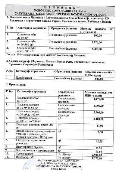 Opštinsko veće opštine Čajetina dalo je saglasnost na Odluku o izmeni cenovnika osnovnih komunalnih usluga koje pruža KJP „Zlatibor“ Čajetina.