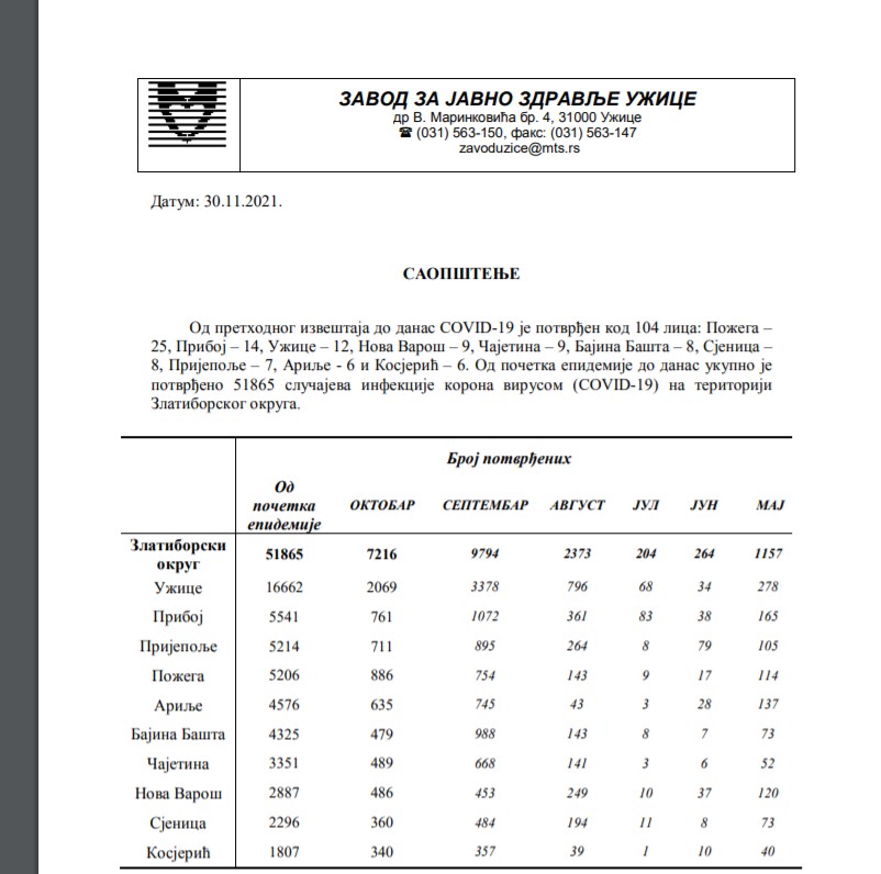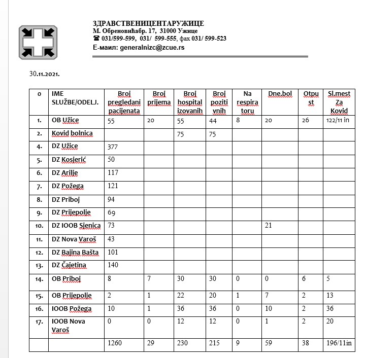 Početna Koronavirus Iznad 1200 pregleda obolelih i stotinu novih slučajeva kovid-19 u okrugu Koronavirus 30. novembar 2021. Iznad 1200 pregleda obolelih i stotinu novih slučajeva kovid-19 u okrugu Autor: RadioLuna Podelite Facebook Twitter Pinterest WhatsApp - REKLAMA - - Advertisement - Podelite Facebook Twitter Pinterest WhatsApp RadioLunahttps://www.radioluna.info - REKLAMA - Vremenska prognoza Užice few clouds enter location 3.4 ° C 3.4 ° 3.4 ° 92 % 1.7kmh 24 % Sre 13 ° Čet 16 ° Pet 17 ° Sub 17 ° Ned 10 ° Poslednje vesti Užice JKP Vodovod: Autobus nije „upao u rupu“, niti je došlo do ugrožavanja bezbednosti putnika i saobraćaja RadioLuna - 11. novembar 2025. - REKLAMA - Dijalog Svet Evropska komisija u izveštaju o Srbiji: Polarizacija društva produbljena, reforme usporene 5. novembar 2025. Društvo Godišnjica pada nadstrešnice u Novom Sadu, još bez sudskog postupka 1. novembar 2025. Srbija i region Pravedna tranzicija u Srbiji – bez plana, inkluzivnosti i namenskih fondova 24. oktobar 2025. Poslednje vesti Užice JKP Vodovod: Autobus nije „upao u rupu“, niti je došlo do ugrožavanja bezbednosti putnika i saobraćaja 11. novembar 2025. Sport Deca uglavnom na klupama i u kućama, inkluzija na papiru (AUDIO) 11. novembar 2025. Sport Veljko Vasiljević u sastavu Srbije na Prvenstvu Balkana u krosu 11. novembar 2025. Društvo MUP upozorava na lažne poruke i mejlove 11. novembar 2025. Svet UNHCR: Milioni ljudi širom sveta napuštaju domove zbog klimatskih promena 11. novembar 2025. - REKLAMA - Postavite komentar otkaži odgovor Unesite Vaš komentar! molimo Vas unesite Vaše ime Vi ste uneli pogrešnu Email-Adresu molimo Vas unesite Vašu Email-Adresu Save my name, email, and website in this browser for the next time I comment. Δ