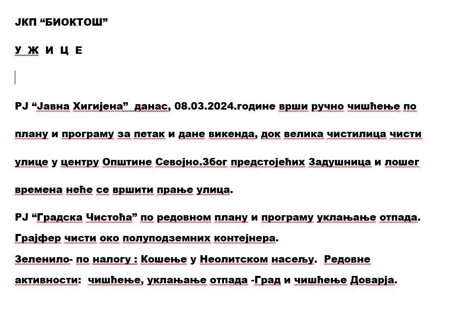 Koristite javni, a ne sopstveni prevoz u cilju izbegavanja saobraćajne gužve, apelovali sui z JKP Bioktoš na građane koji izlaze na gradska groblja Dovarje i Sarića Osoje i u Sevojnu na groblje Vlaovac. Apelovali su na građane i da ne ostavljaju hranu na groblju.