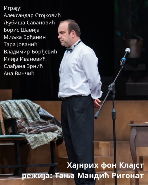 Večeras je na programu predstava Razbijeni krčag Narodnog pozorišta Republike Srpske iz Banje Luke, po tekstu Hajnriha fon Klajsta, u režiji Tanje Mandić Rigenat.