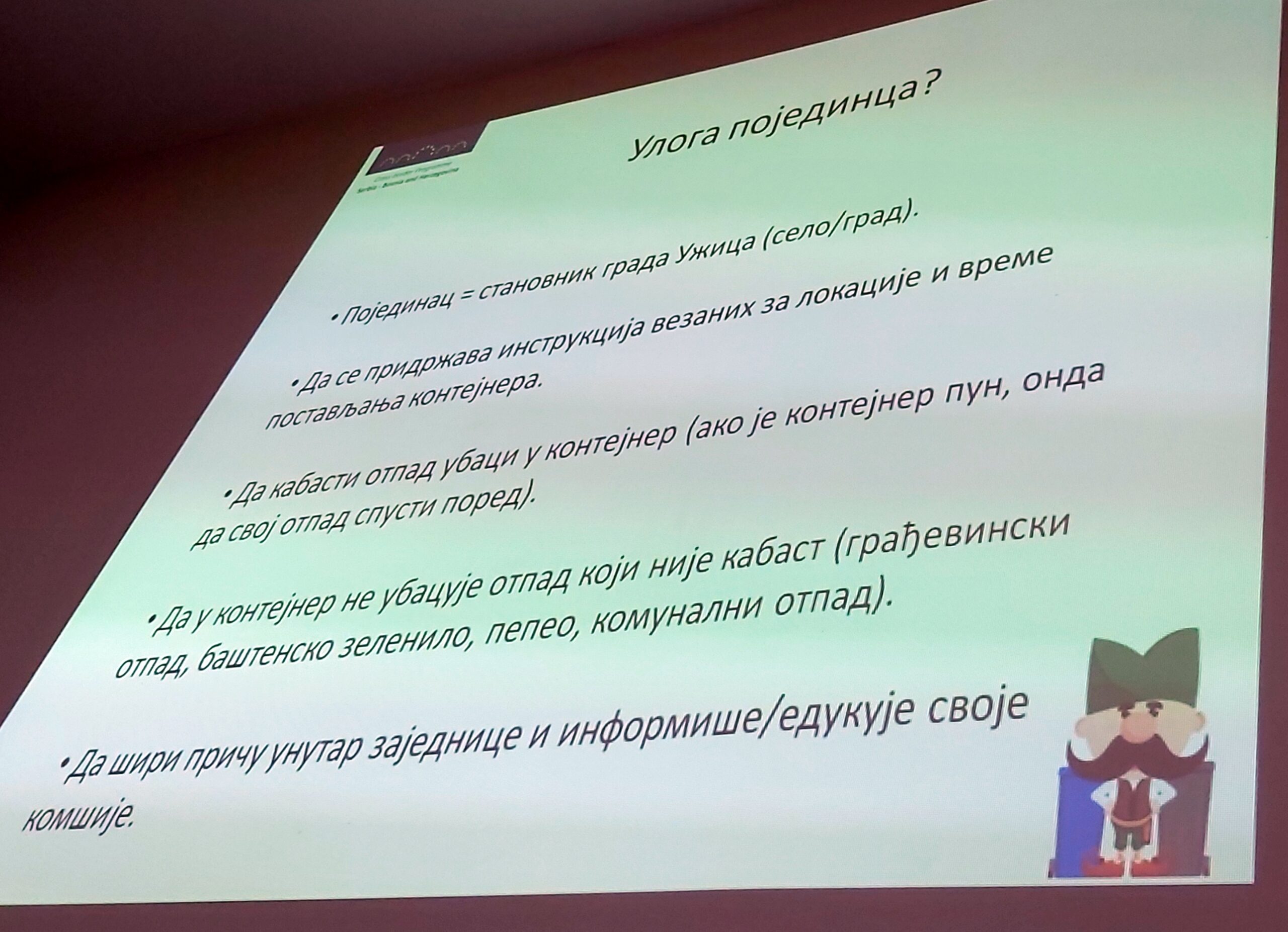 –  Sastanci sa stanovništvom potvrđuju da je problem upravljanja otpadom u gradu Užicu prilično veliki, kompleksan. Da paradoks bude veći, tim problemom se ovaj grad i komunalna preduzeća već bave izvesno vreme. Daleko od toga da se do sada ništa nije radilo po tom pitanju, jednostavno, problem je nadišao sve naše kapacitete i projektima pokušavamo nekako da mu stanemo u kraj, sumirao je za Lunu Radojević, viši savetnik za zaštitu životne sredine u Regionalnoj razvojnoj agenciji Zlatibor.