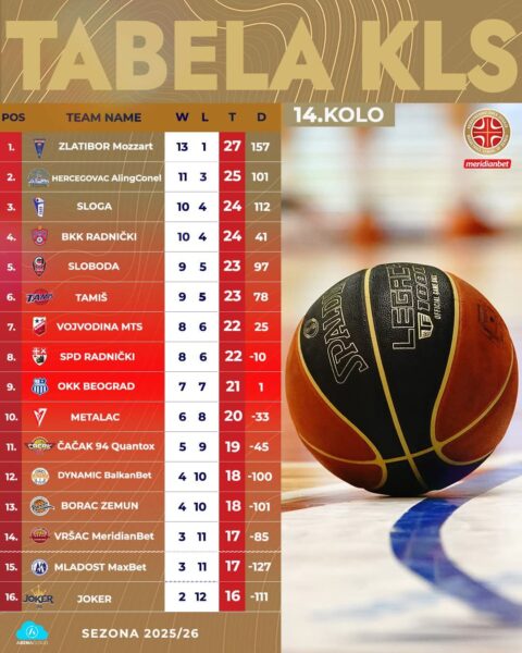 Utakmica 15.kola Meridianbet Košarkaške lige Srbije između Slobode i Tamiša igra se danas, u subotu 10.januara od 18 časova u sportskoj hali Veliki park u Užicu.