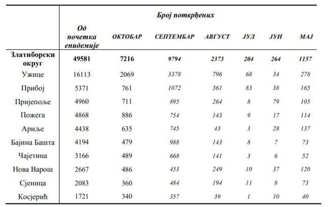 8, Sjenica – 8, Bajina Bašta – 7 i Kosjerić – 5, naveli su brojeve novih potvrđenih slučajeva iz ZZJZ Užice.