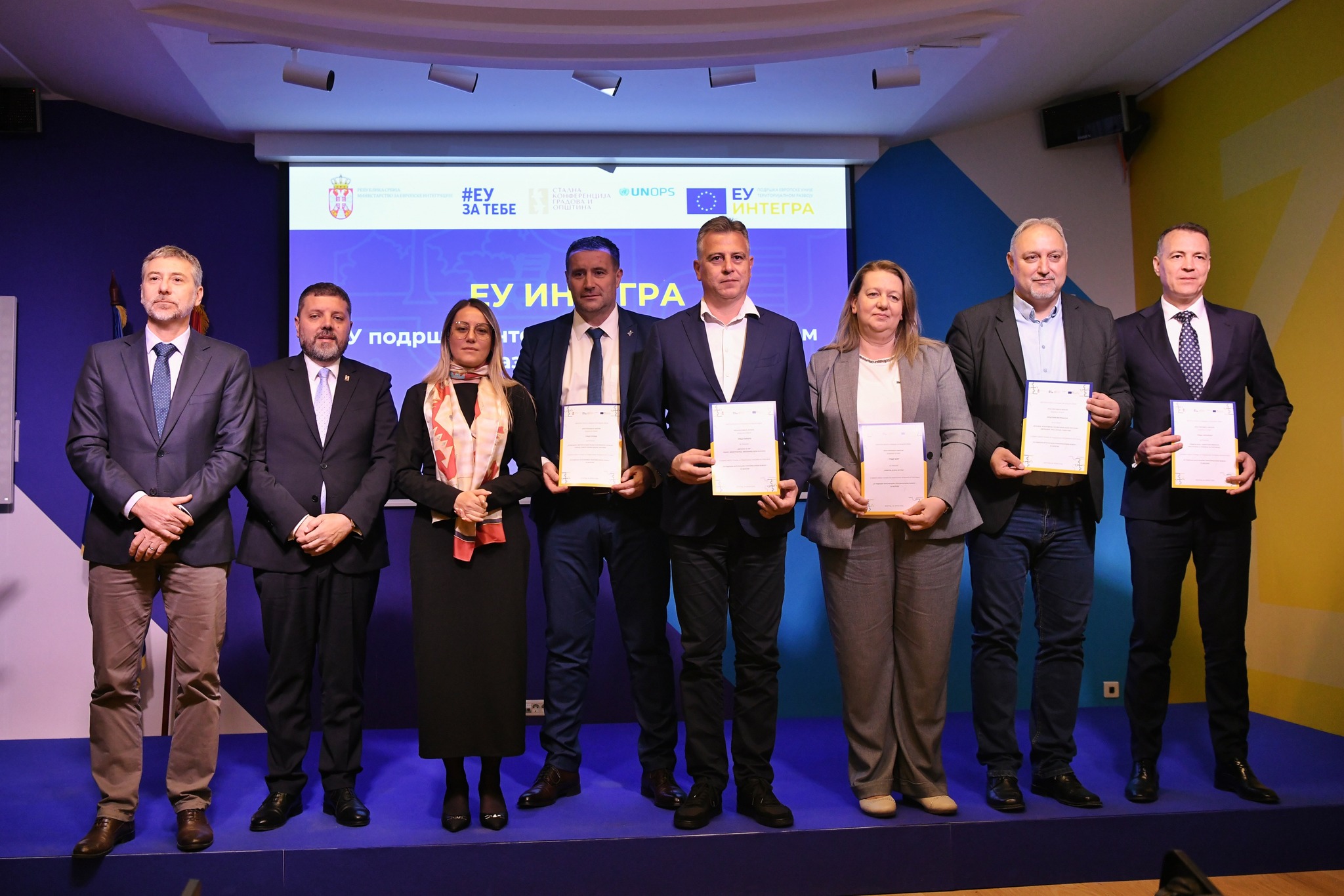 Program EU INTEGRA, ukupne vrednosti 15 miliona evra, finansira Evropska unija kroz Instrument za pretpristupnu pomoć (IPA III). Ministarstvo za evropske integracije Republike Srbije je glavni korisnik programa, dok program sprovode Kancelarija Ujedinjenih nacija za projektne usluge (UNOPS) i Stalna konferencija gradova i opština (SKGO).