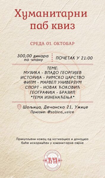 Najava manifestacije: 2. oktobar u 20:00 časova, Kulturni centar Zlatibor
