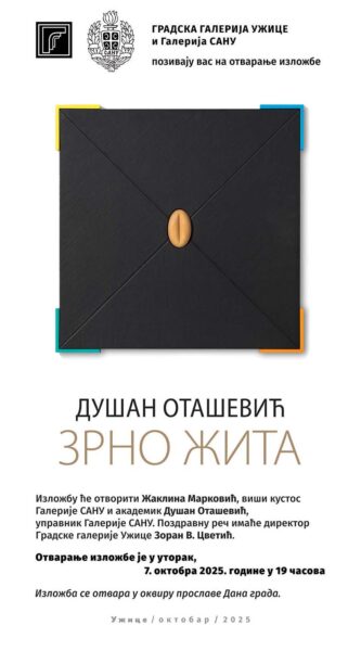 Multimedijalna izložba akademika Dušana Otaševića pod nazivom ZRNO ŽITA biće otvorena od 7. oktobra u Gradskoj galeriji Užice.