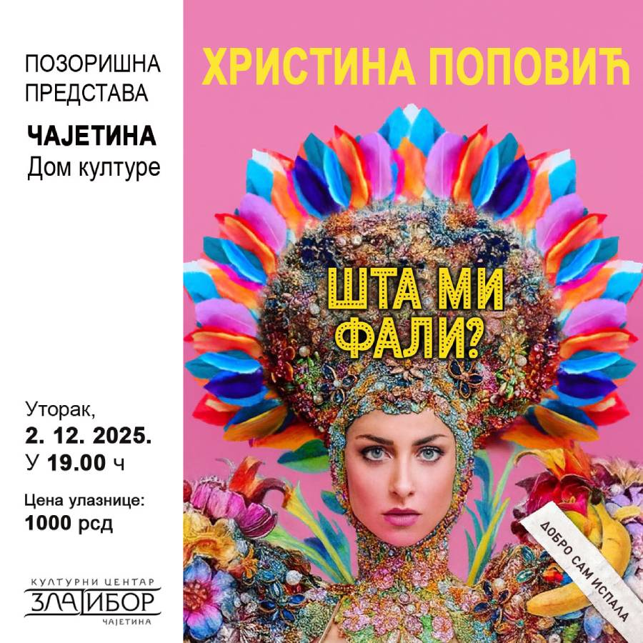 Autobiografska monodrama glumice Hristine Popović ,,Dobro sam ispala! Šta mi fali?” biće izvedena 2. decembra, u Domu kulture u Čajetini, od 19 časova.