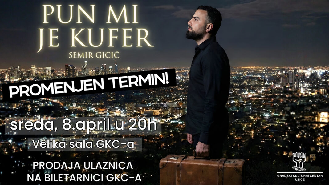 Monokomedija ‘’Pun mi je kufer’’ biće održana večeras od 20h u klubu Gradskog kulturnog centra. Ulaznice mogu se nabaviti na biletarnici GKC-a u periodu od 11 do 16h kao i pred početak predstave. Cena ulaznice je 1200 rsd.