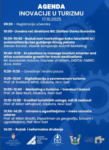 “Konferencija će okupiti stručnjake iz oblasti turizma, hotelijerstva i digitalnih tehnologija sa ciljem da predstavi najnovije trendove u primeni veštačke inteligencije, digitalizacije i automatizacije u turizmu. Događaj je namenjen svima koji žele da unaprede svoje znanje, inspirišu se inovacijama i pronađu nove poslovne prilike”, najavio je msc Stojan Vuković, projektni menadžer i koordinator događaja.