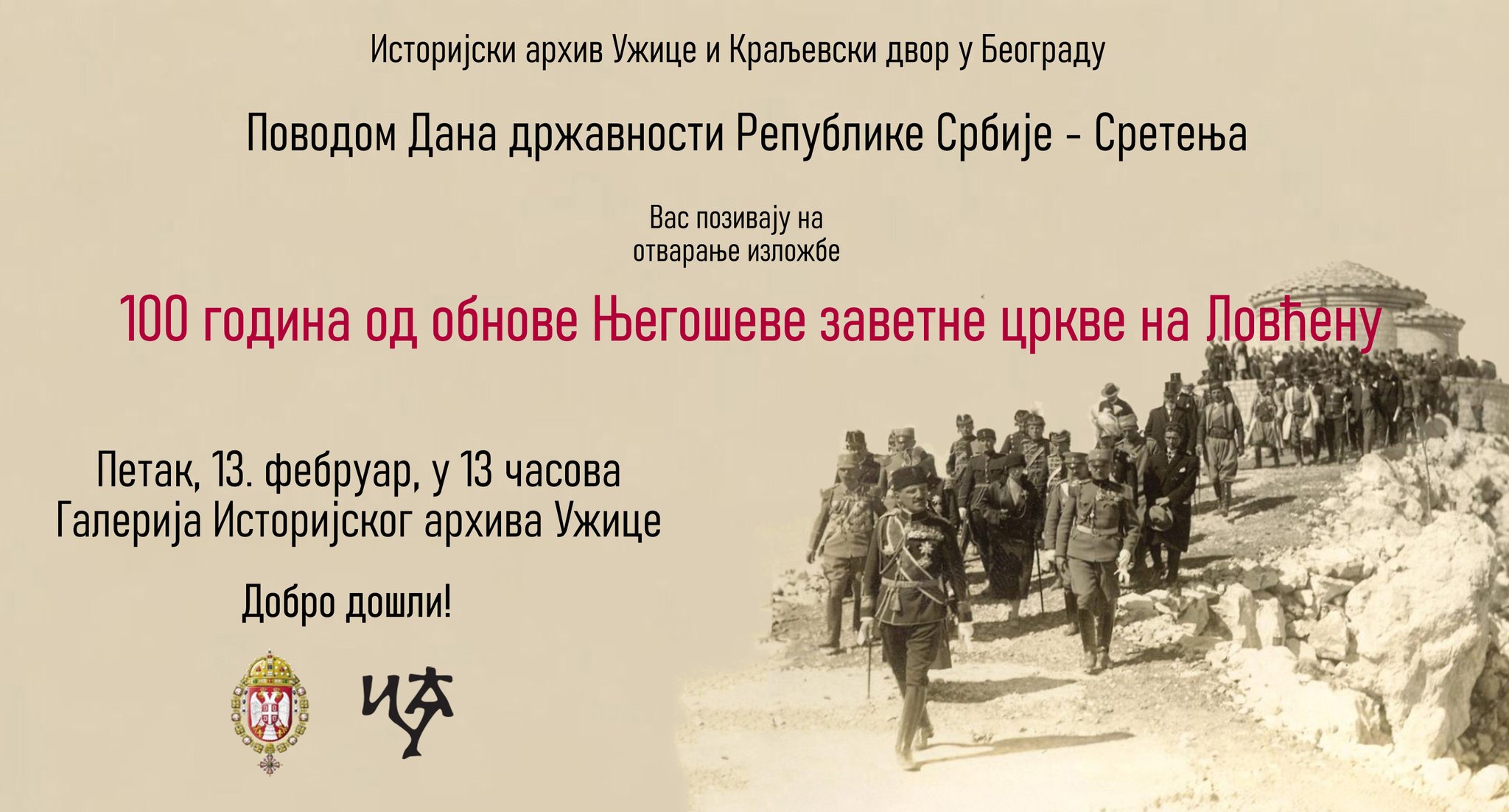 Povodom Dana državnosti Republike Srbije – Sretenja, Istorijski arhiv Užice i Kraljevski dvor u Beogradu organizuju izložbu “100 godina od obnove Njegoševe zavetne crkve na Lovćenu.