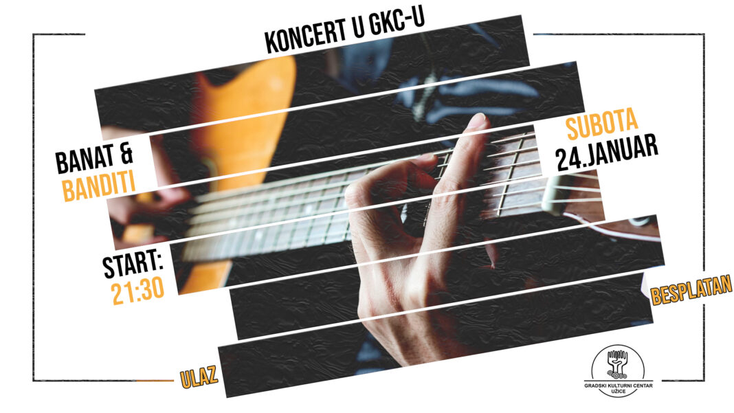 Subota 24. januar u klubu Štab Gradskog kulturnog centra donosi nastup grupe Banat i banditi sa početkom u 21:30h. Ovaj sastav iskusnih muzičkih profesionalaca garantuje dobru atmosferu i veče puno energije uz slobodan ulaz i odličnu svirku.