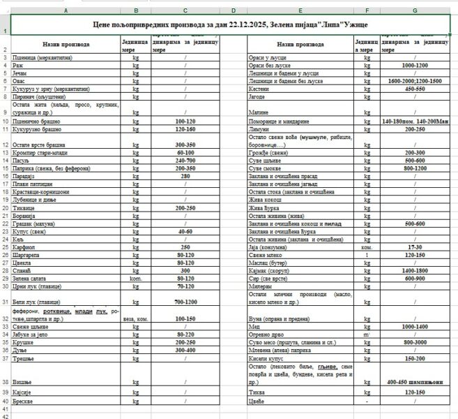 Početna Zlatiborski okrug Užice Pijačni barometar: zelena pijaca "Lipa" Zlatiborski okrugUžice 22. decembar 2025. Objavljeno: 2 sata ranije Pijačni barometar: zelena pijaca “Lipa” Autor: RadioLuna Podelite Facebook Twitter Pinterest WhatsApp - REKLAMA - Foto screenshot obaveštenja RJ Pijac JKP Bioktoš - Advertisement - Tagscenehranapijacservisne informacijezelena pijaca Lipa Podelite Facebook Twitter Pinterest WhatsApp RadioLunahttps://www.radioluna.info - REKLAMA - Vremenska prognoza Užice clear sky enter location 1.6 ° C 1.6 ° 1.6 ° 84 % 1.1kmh 1 % Pon 4 ° Uto 10 ° Sre 6 ° Čet 4 ° Pet 4 ° Poslednje vesti Sport Izuzetan nastup KK “Rujno” na turniru u Kraljevu RadioLuna - 22. decembar 2025. - REKLAMA - Dijalog Užice Skupština o izveštaju DRI: Opozicija zatražila utvrđivanje odgovornih za utrošen novac 15. decembar 2025. Užice Otvoreno pismo: Skupštinska tačka “deponija Duboko” prođe, ali transfer stanica neće 12. decembar 2025. Užice Nenadić: Zagađenje Turskog potoka prisutno od osnivanja deponije / Opozicija: „Duboko“ekološki i komunalni rizik za Užice 12. decembar 2025. Poslednje vesti Sport Izuzetan nastup KK “Rujno” na turniru u Kraljevu 22. decembar 2025. Svet Dan pre ulaska u 2026. godinu, u Danskoj će poštar dostaviti poslednje pismo 22. decembar 2025. Sport Nova Varoš dobila klizalište 22. decembar 2025. Trendovi Er Srbija premašila prošlogodišnji rezultat od 4,4 miliona prevezenih putnika 22. decembar 2025. Užice Pijačni barometar: zelena pijaca “Lipa” 22. decembar 2025. - REKLAMA - Postavite komentar otkaži odgovor Unesite Vaš komentar! molimo Vas unesite Vaše ime Vi ste uneli pogrešnu Email-Adresu molimo Vas unesite Vašu Email-Adresu Save my name, email, and website in this browser for the next time I comment. Δ