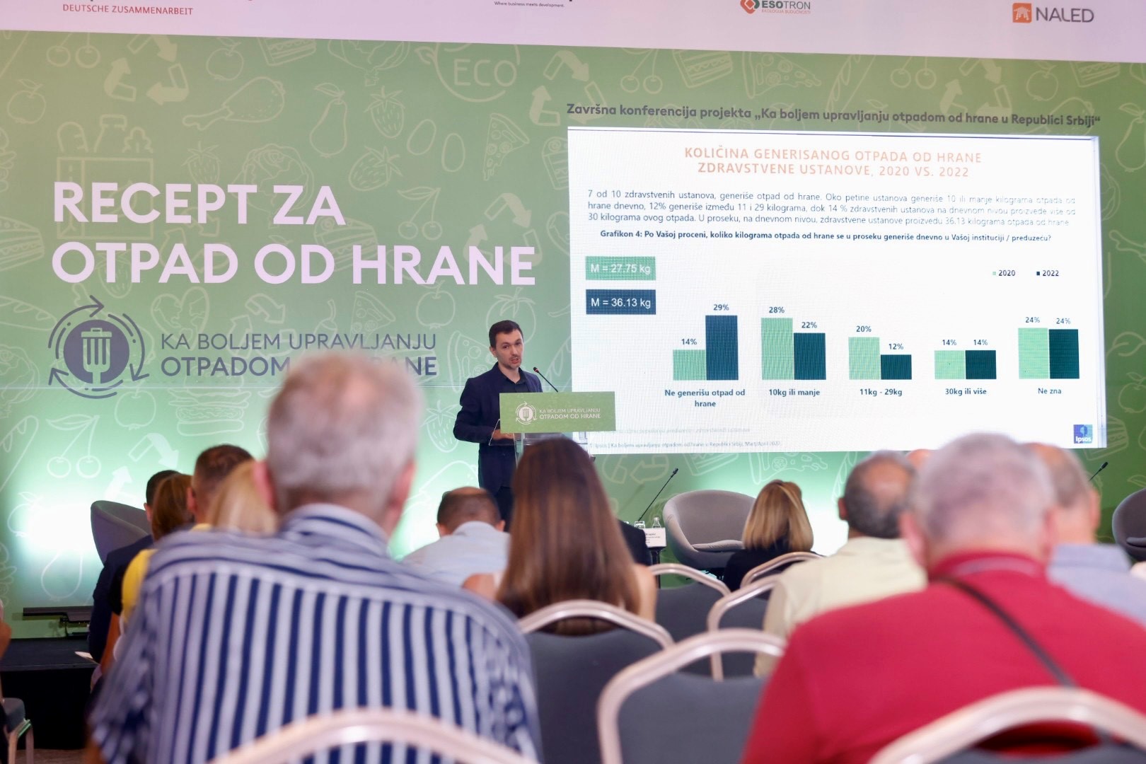 Na skupu koji su organizovali NALED i kompanija Eso Tron, uz podršku Nemačke razvojne saradnje koju sprovodi GIZ, povodom završetka projekta „Ka boljem upravljanju otpadom od hrane“, istaknuto je da se većina otpada od hrane i dalje najčešće transportuje na deponiju. Na drugom mestu služi za ishranu životinja, a zatim i za kompostiranje. Korišćenje otpada u energetske svrhe i dalje se smatra najređim oblikom prerade i neiskorišćenim potencijalom.