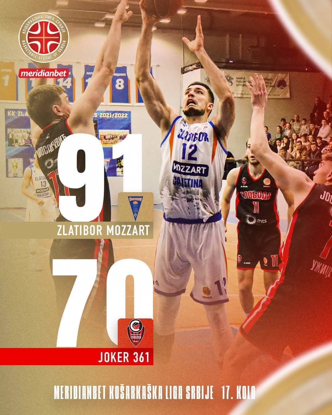 Košarkaši Slobode iz Užica poraženi su u Čajetini od ekipe Zlatibora Mozzart Bet rezultatom 91:70 (53:38). Domaći tim je već u prvom poluvremenu stekao osetnu prednost, koju je uspešno sačuvao do kraja utakmice.