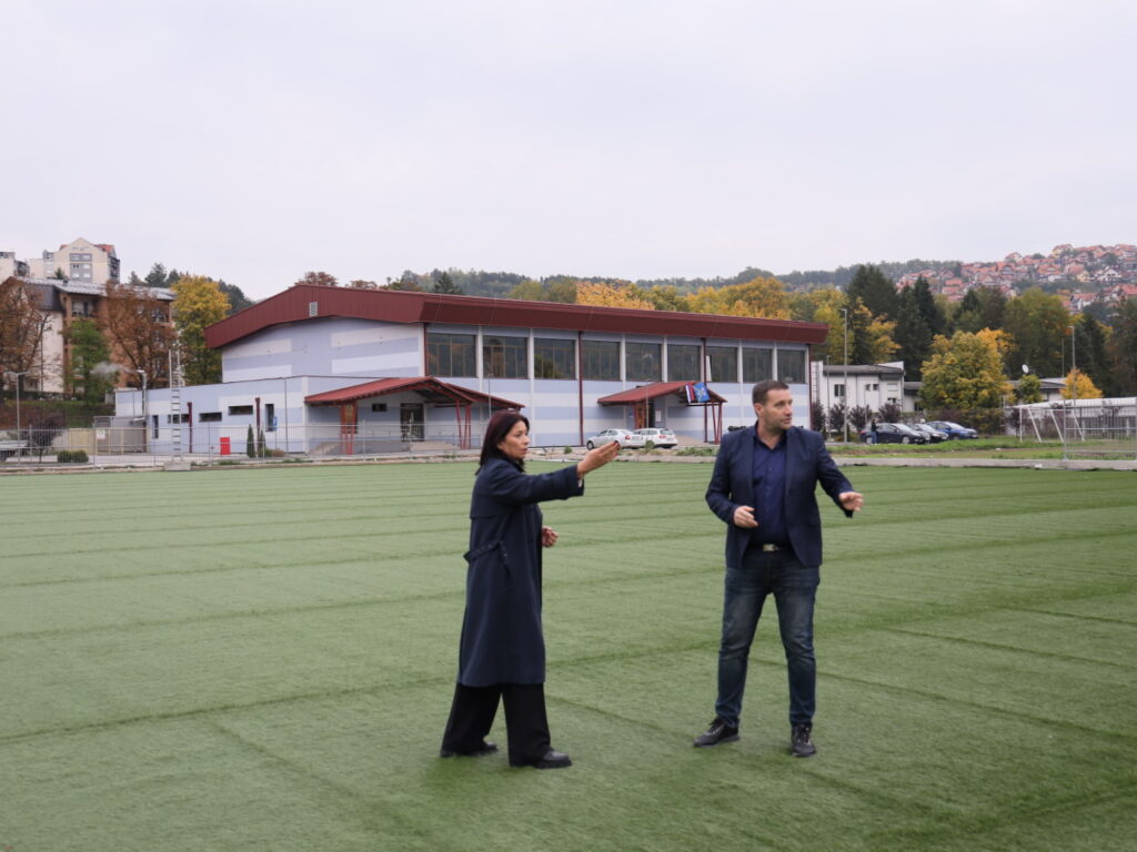 Gradonačelnica Užica dr Jelena Raković Radivojević i zamenik gradonačelnice Rajko Radosavljević obišli su fudbalski teren Sportskog centra u Krčagovu, gde se privode kraju radovi na postavljanju veštačke podloge.