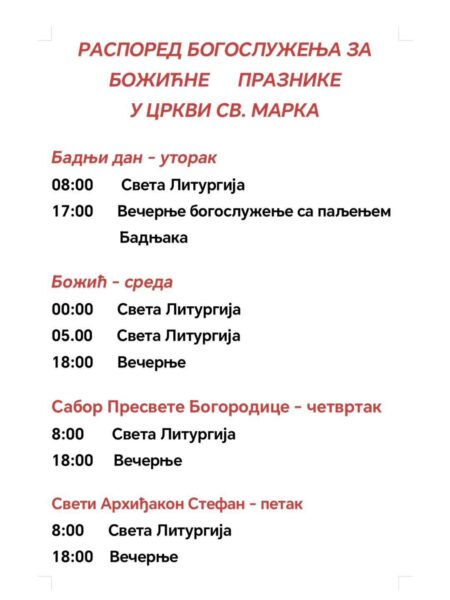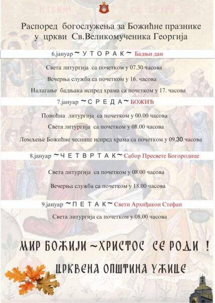 Početna Iz prve ruke Bajina Bašta, Požega, Kosjerić, Arilje Raspored bogosluženja za Božićne praznike
