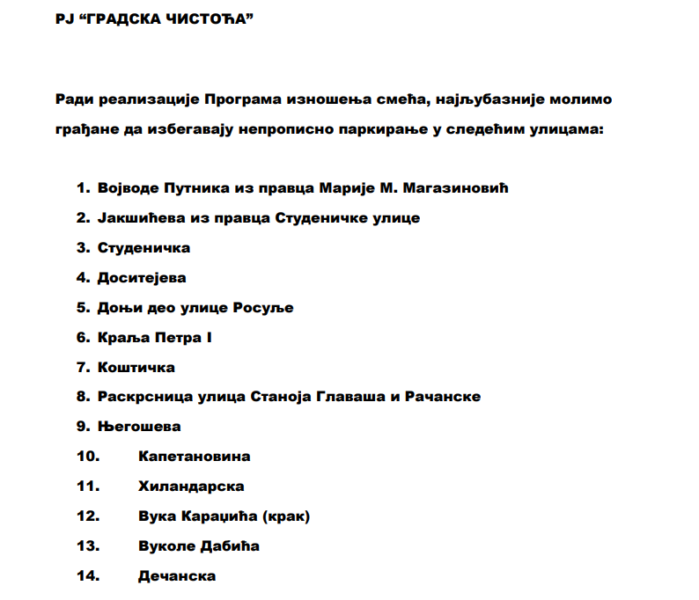 RJ Gradska čistoća: Izbegavati nepropisno parkiranje zbog odvoženja smeća