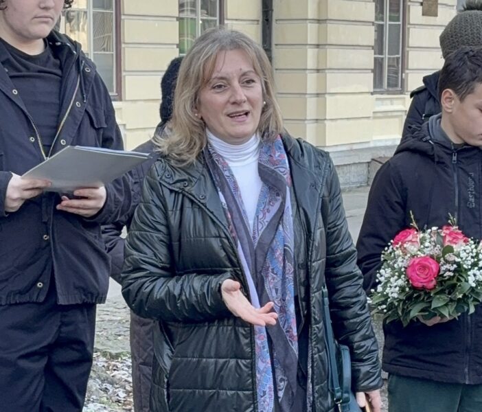 Ona je u ime Društva istoričara i pozdravila udruženja Društvo srpskih domaćina, koje je omogućilo postavljanje spomenika, Udruženje potomaka ratnika „Major Kosta Todorović“ i Kolo srpskih sestara.