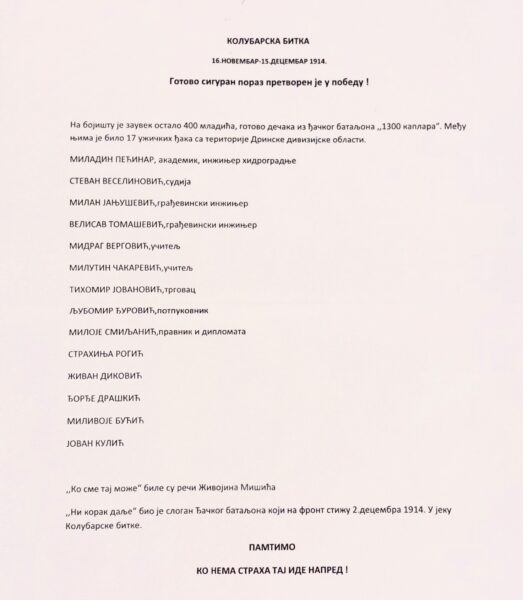 Na današnji dan kada obeležavamo sećanje na pobedu u Kolubarskoj bici 1914.