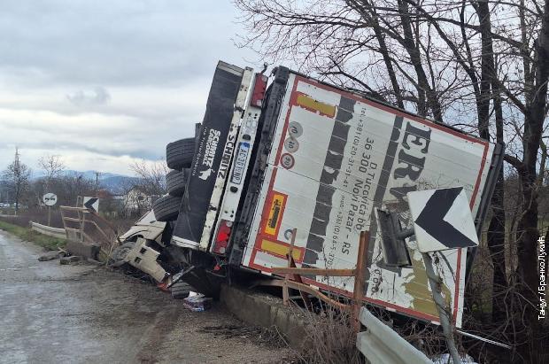 U nezgodi nije bilo povređenih, ali je na kamionu pričinjena znatna materijalna šteta, dok je deo tereta ispao iz vozila i rasut je pored puta.