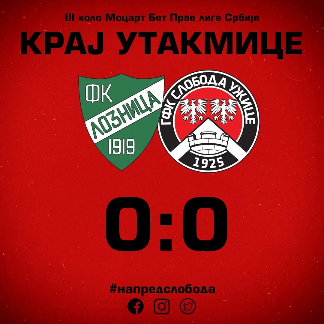 Fudbaleri Slobode su odigrali nerešeno protiv Loznice rezultatom 0:0 u 3. kolu Mocart Bet Prve lige Srbije čime je užička ekipa trenutno peta na tabeli.