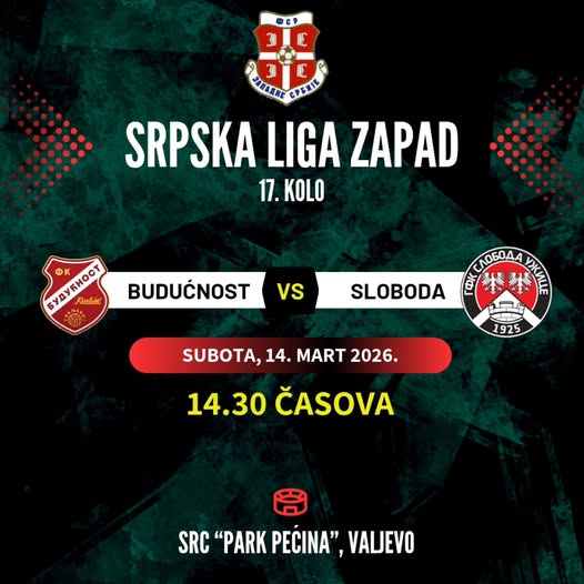 U okviru 17. kola Srpske lige Zapad, ekipa užičke Slobode gostuje ekipi Budućnosti Krušik iz Valjeva. Utakmica se igra u subotu, 14. marta 2026. godine, sa početkom u 14:30 časova.