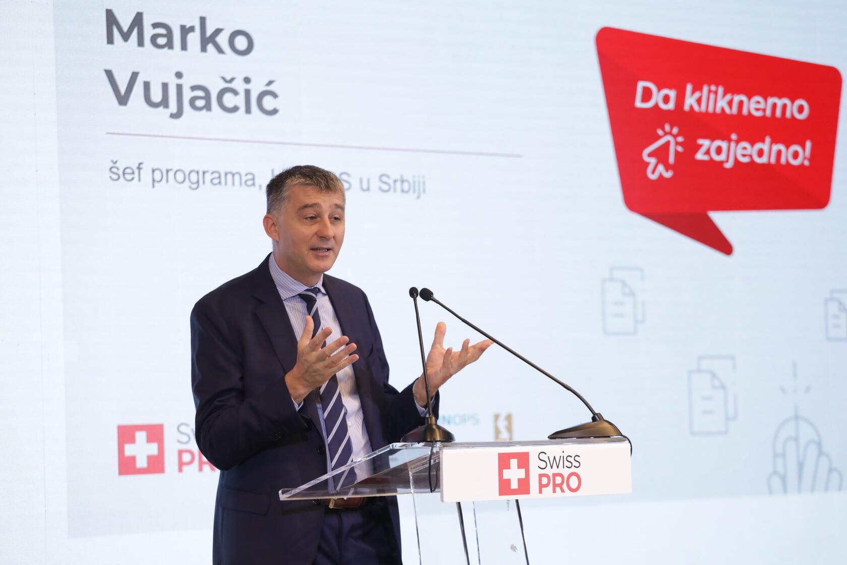 Mnoge usluge lokalnih samouprava su sada jeftinije i brže i zaista su za građane i privredu efikasnije. Ne smemo da zaboravimo da ipak građani i građanke ostvaruju svoja prava i završavaju svoje poslove na lokalnom nivou, a mi ćemo i dalje težiti razvijanju eUprave i elektronskih usluga na lokalnom. Zahvaljujući podršci Vlade Švajcarske bili smo u mogućnosti da zajedno doprinesemo pozitivnim promenama, rekao je Marko Vujačić, šef programa UNOPS u Srbiji.