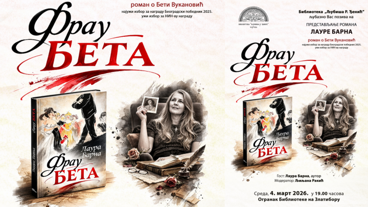 Promocija romana „Frau Beta” Laure Barna biže održana 4. marta, u 19 časova, u ogranku Biblioteke “Ljubiša R. Đenić” na Zlatiboru.