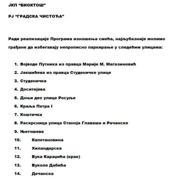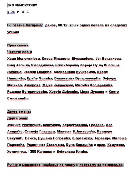 Početna Zlatiborski okrug Užice U planu odvoz pepela, nepropisno parkiranje remeti odvoz otpada Zlatiborski okrugUžice 8. decembar 2025. Objavljeno: 4 sata ranije U planu odvoz pepela, nepropisno parkiranje remeti odvoz otpada Autor: RadioLuna Podelite Facebook Twitter Pinterest WhatsApp - REKLAMA - Foto screenshot obaveštenja JKP Bioktoš Foto screenshot obaveštenja JKP Bioktoš Pijačni barometar: Cene proizvoda na pijaci “Lipa” - Advertisement - TagsJKP Bioktošodvoz pepelaparkiranjesaobraćaj Ueservisne infrmacije Podelite Facebook Twitter Pinterest WhatsApp RadioLunahttps://www.radioluna.info - REKLAMA - Vremenska prognoza Užice broken clouds enter location 6.4 ° C 6.4 ° 6.4 ° 85 % 0.6kmh 81 % Pon 7 ° Uto 10 ° Sre 13 ° Čet 12 ° Pet 10 ° Poslednje vesti Srbija i region Status energetski ugroženog kupca za penzionere sa primanjima do 31,092,11 dinara RadioLuna - 8. decembar 2025. - REKLAMA - Dijalog Društvo SRBATOM: Nema povećane radijacije u Srbiji zbog oštećenja zaštitne strukture Černobila 6. decembar 2025. Politika Evropski zeleni podržali građane Srbije i ZLF u borbi za demokratiju 6. decembar 2025. Društvo Mićović o NIS-u: Najbolje bi bilo vratiti ga u srpske ruke 6. decembar 2025. Poslednje vesti Srbija i region Status energetski ugroženog kupca za penzionere sa primanjima do 31,092,11 dinara 8. decembar 2025. Digitalizacija i E-uprava Rok za prijavu nelegalnih objekata 60 dana, gužva u Užicu (VIDEO) 8. decembar 2025. Užice U Jokanovića kući video prezentacija starih zanata i interaktivna radionica sa zanatlijama 8. decembar 2025. Društvo Do 18. decembra traje Javna rasprava o Nacrtu zakona o radnoj praksi 8. decembar 2025. Društvo Šta znači ako NBS bude na udaru sankcija? 8. decembar 2025. - REKLAMA - Postavite komentar otkaži odgovor Unesite Vaš komentar! molimo Vas unesite Vaše ime Vi ste uneli pogrešnu Email-Adresu molimo Vas unesite Vašu Email-Adresu Save my name, email, and website in this browser for the next time I comment. Δ