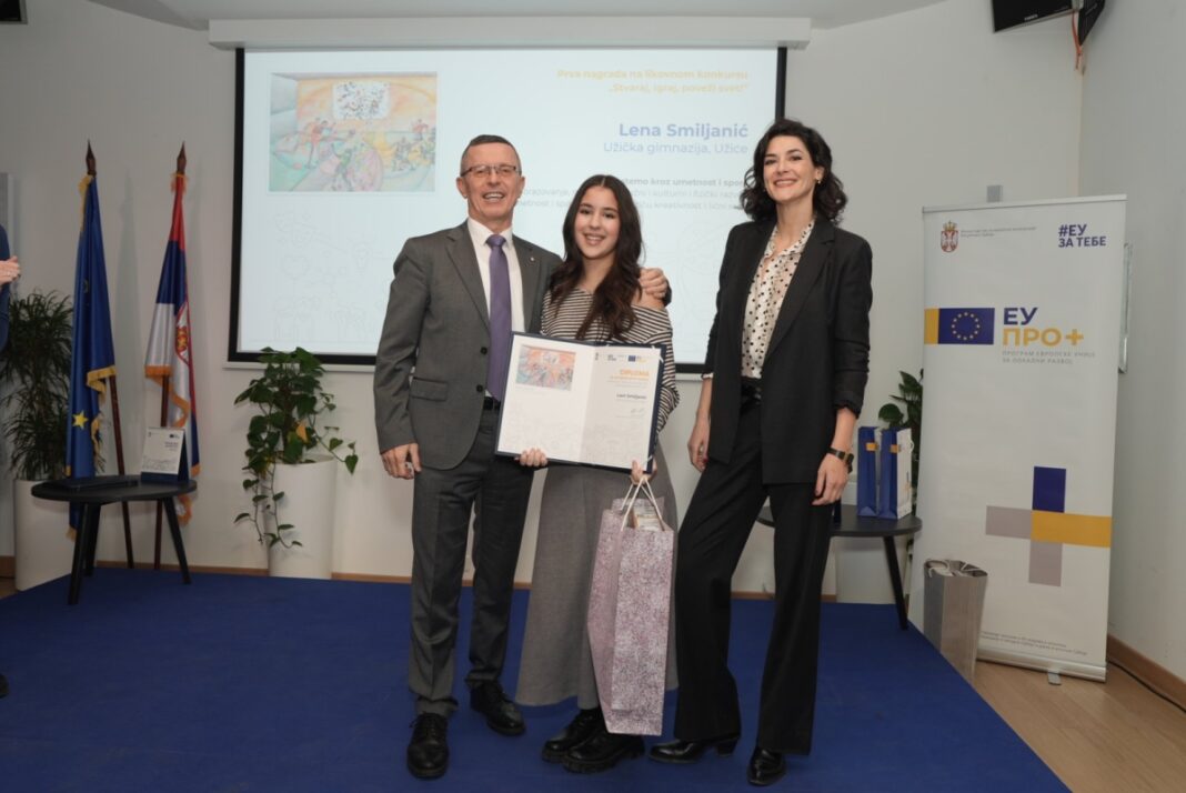 „Drago nam je što mladi prepoznaju i podršku Evropske unije Srbiji i što u svojim sredinama vide kako ulaganja u sportske hale, igrališta i kulturne centre, kao i programi razmene i mobilnosti mladih, stvaraju nove prilike za povezivanje i napredak. Za nas je ovaj kalendar simbol vaše kreativnosti, ali i poruka o vrednostima koje delimo – solidarnosti, jednakosti, inkluziji i poštovanju različitosti,” dodala je Halačeva. Ona se posebno zahvalila i profesorima koji su svojim znanjem i posvećenošću bili oslonac mladim autorima, kao i školama koje neguju kreativnost i aktivno učešće mladih i zaključila da Evropska unija ostaje snažan partner mladima u Srbiji koji su graditelji povezanijeg, otvorenijeg i pravednijeg društva.