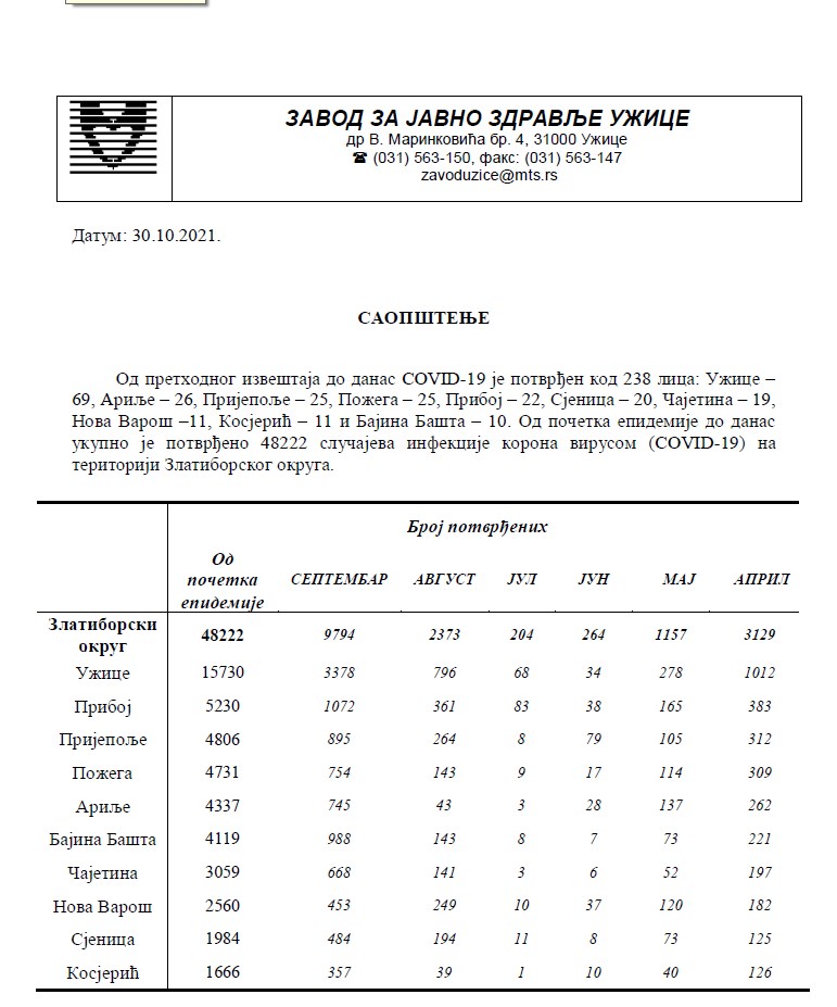 Više od 230 novoobolelih u okrugu