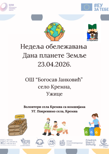 Neformalna grupa „Volonteri sela Kremna sa komšijama“ obeležiće 23. aprila Dan planete Zemlje druženjem sa učenicima OŠ „Bogosav Janković“ u Kremnima.
