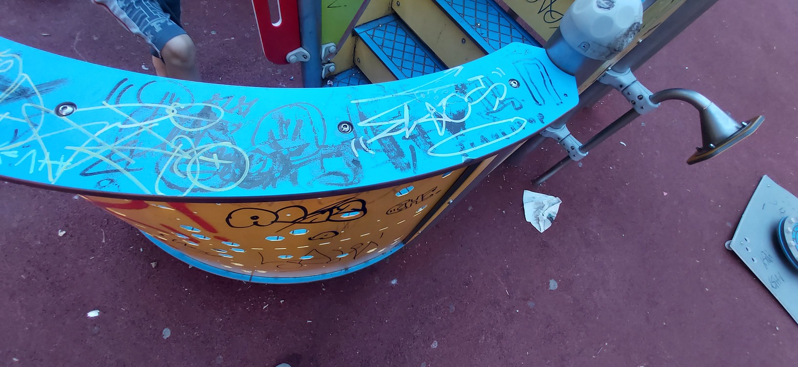Ni nedavna napomena da mališani koriste lavirint za igru nije sprečila mlade da, u našem prisustvu, nastave da gaze nekada deo tobogana koji je odnedavno na tartan podlozi.