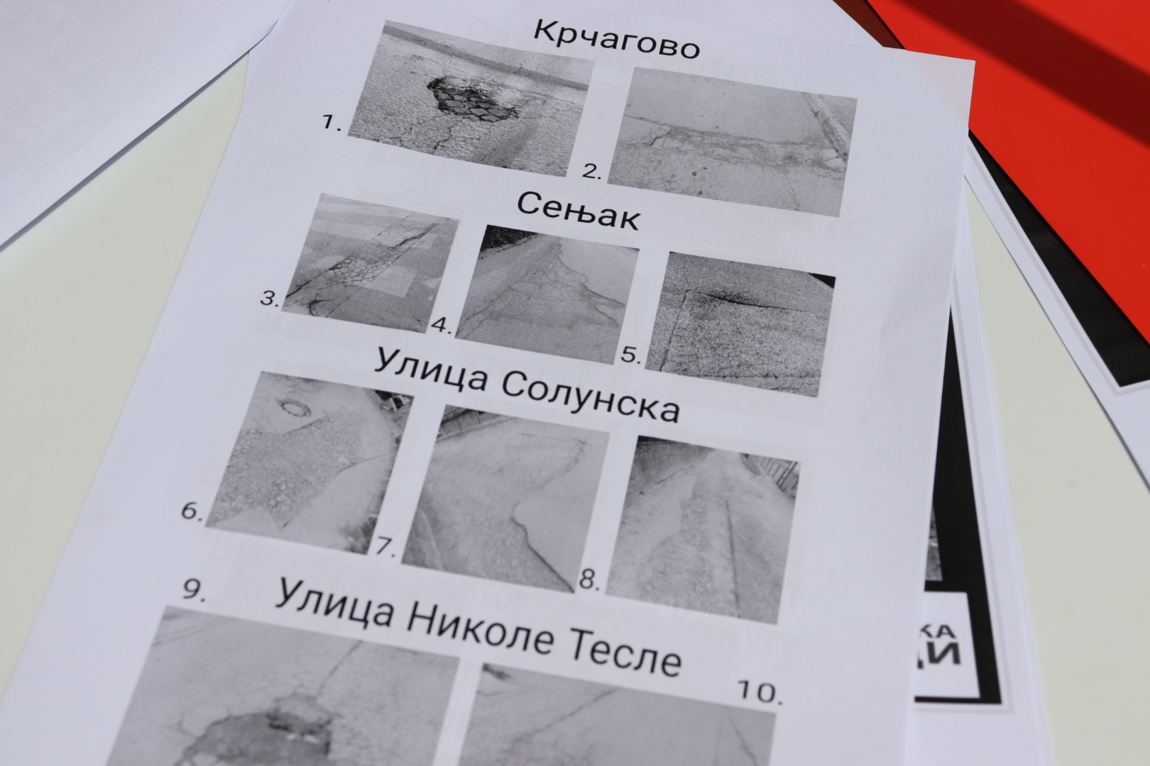 Mi smo u pisarnici predali jedan album kao primerak za gradonačelnicu Užica Jelenu Raković Radivojević i nadamo se da će ona u ponedeljak pažljivo pogledati ovaj album i da će njeni saradnici popraviti udarne rupe u gradu, rekao je predsednik Gradskog odbora Srpske stranke Zavetnici u Užicu Aleksandar Milić dodjaući da su fotografije slali građani iz mesta gde žive te da je za početak odvojeno 50 fotografija, ali ih ima više.